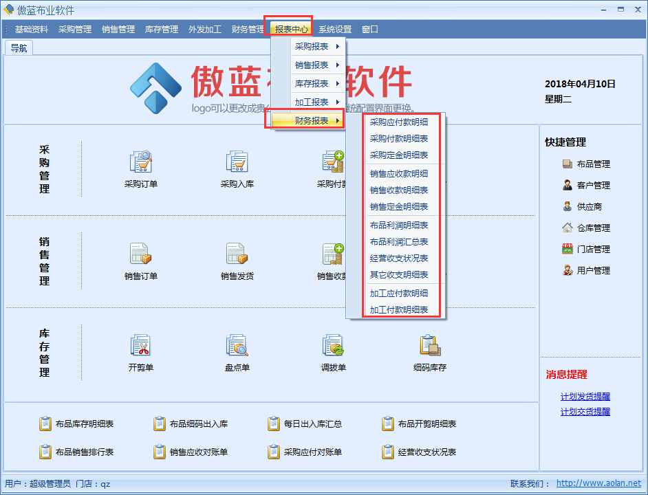 傲藍軟件 > 布匹銷售軟件 > 軟件功能 > 正文
