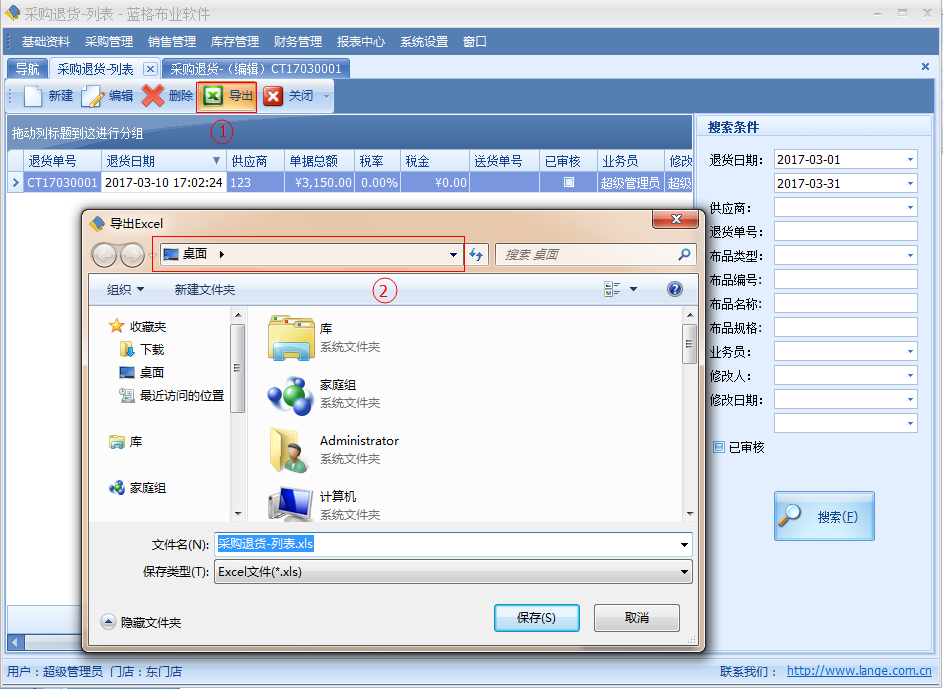 導(dǎo)出是把當(dāng)前列表中所有的記錄以 Excel 表格方式導(dǎo)出。在采購(gòu)?fù)素浟斜砩宵c(diǎn)擊工具欄【導(dǎo)出】按鈕。