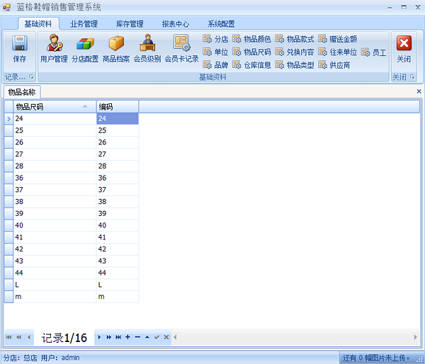 點(diǎn)擊【基礎(chǔ)資料】【物品尺碼】打開物品尺碼編輯界面,在這里添加物品尺碼。物品編碼是在物品生產(chǎn)條碼時(shí)加上物品尺碼編碼。填寫好以后點(diǎn)擊保存。