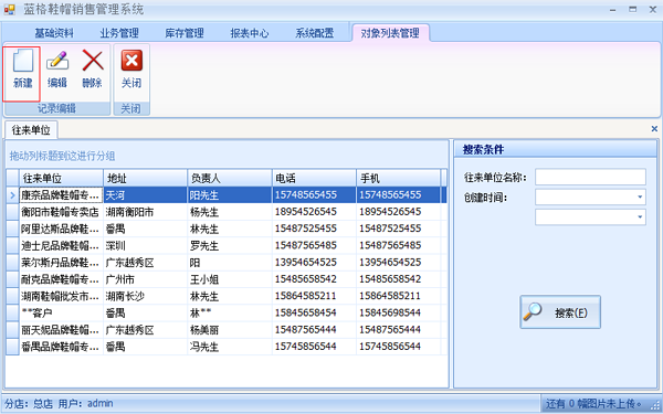 點(diǎn)擊【基礎(chǔ)資料】->【往來單位】,打開往來單位列表界面,這里顯示所有的添加往來單位的數(shù)據(jù),可以對以前的數(shù)據(jù)進(jìn)行編輯,刪除和建立新的往來單位。如下圖所示: