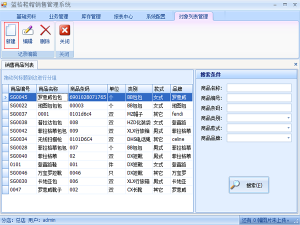 點(diǎn)擊【基礎(chǔ)資料】【商品檔案】打開銷售商品列表,這里顯示所有的商品基本信息。在搜索條件中輸入相關(guān)信息進(jìn)行查找。