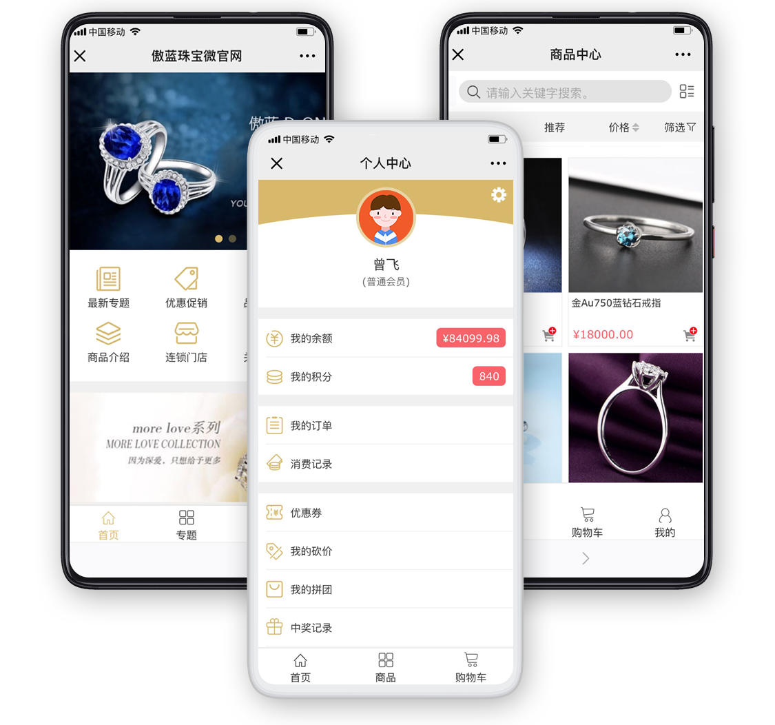 傲藍珠寶軟件系統營銷拓客手段除了拼團砍價之外,還有很多,比如:優惠券、轉盤抽獎、老客帶新、積分兌換等豐富工具,是快速裂變新客戶,提升營業額的有效工具。