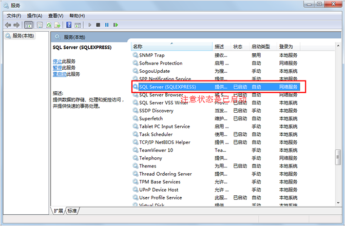 第三步,點擊電腦開始-控制面板-管理工具-服務-SQL server(SQLEXPRESS)