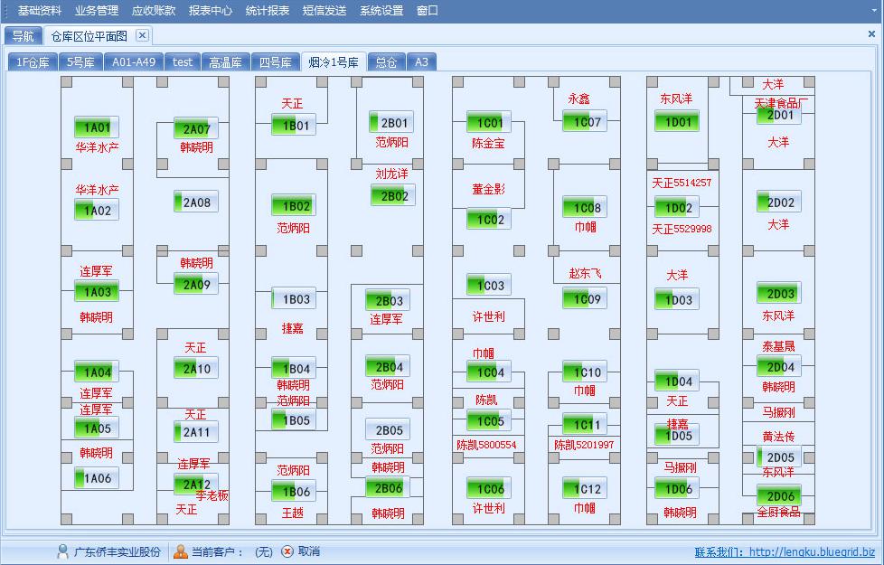 倉庫區位平面圖,以圖表的形式體現倉庫商品的擺放情況,可以直觀地展現冷庫庫存貨物動態、庫位的大利用率等,直觀顯示了解倉庫區位的使用情況,便于了解冷庫倉儲的實際情況。例如此倉庫具體擺放了多少商品,每一個倉位的使用情況如何等,都能清晰地體現。