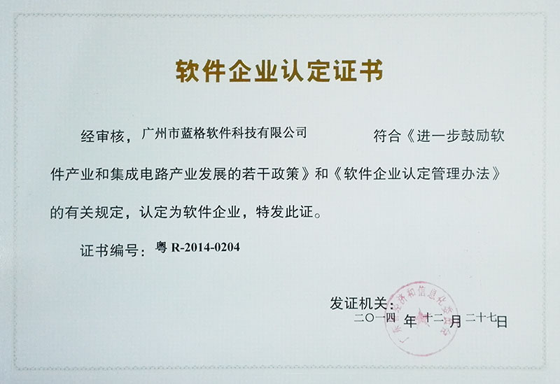 傲藍軟件認定證書 美容管理軟件著作權證書