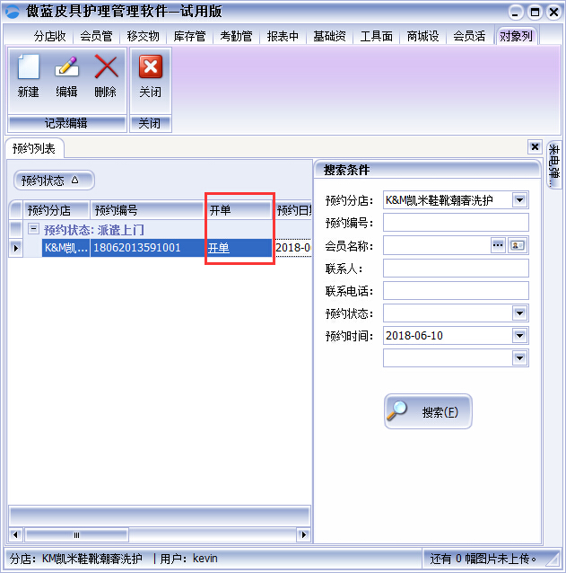 會員電話預約,員工可以在預約單列表點擊開單,系統自動帶入會員信息,無需再次填寫,取物開單便捷高效,如圖: