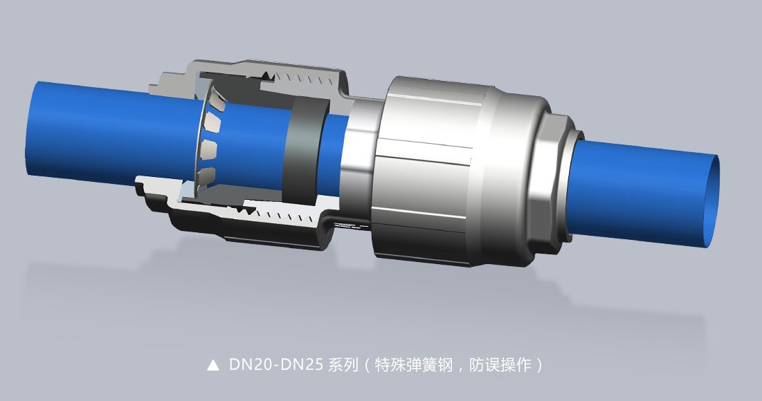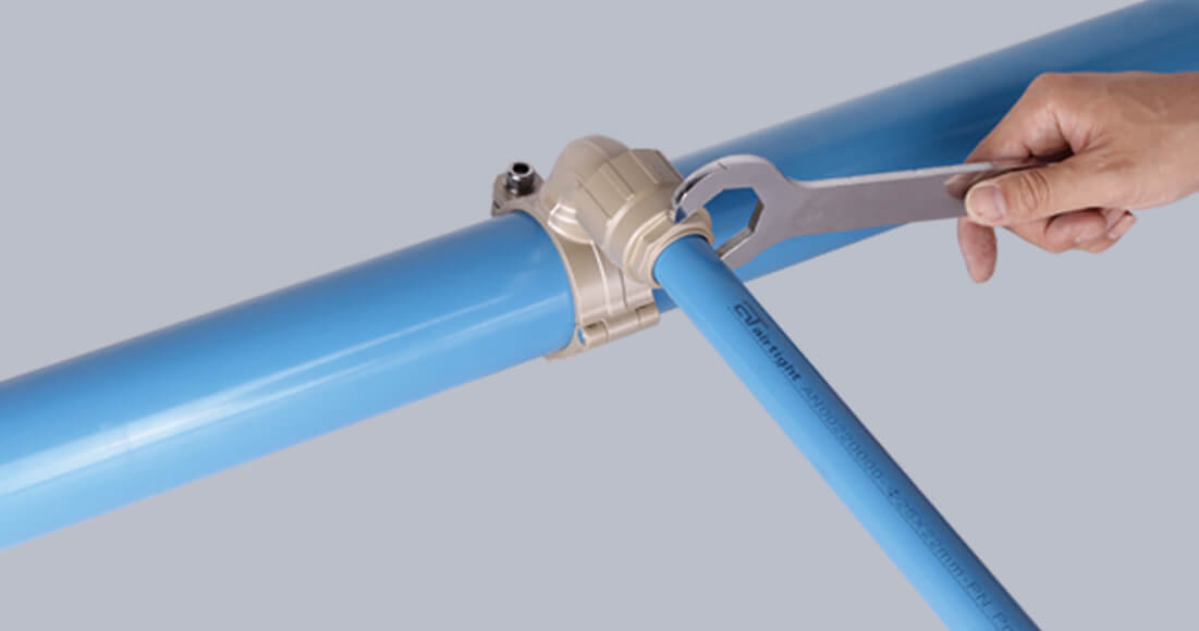 Airtight快裝管路 系統(tǒng)經(jīng)過國家檢驗中心壓力檢驗認證, 根據(jù)不同管徑設(shè)計不同的鎖緊結(jié)構(gòu),確保管路連接安全可靠,接頭采用主動密封,確保零泄露