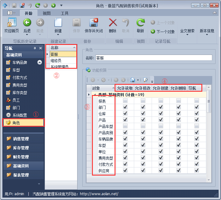 汽車配件銷售軟件分部門分崗位劃分員工權限