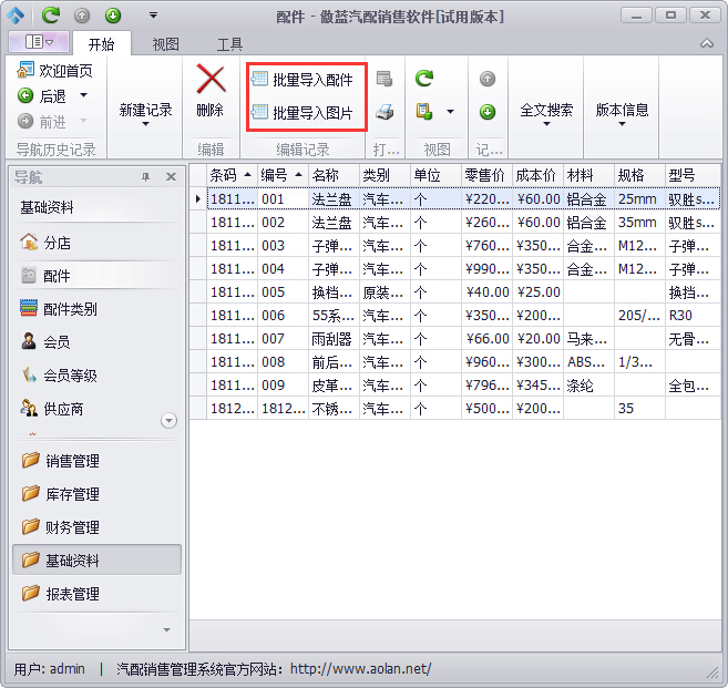 傲藍(lán)汽配進(jìn)銷存管理軟件支持兩種方式將配件資料錄入到軟件上,單個(gè)產(chǎn)品錄入和excel表格批量導(dǎo)入。