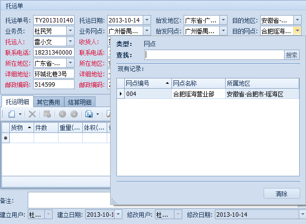 (傲藍物流軟件-輸入始發地區,始發網點、目的地區、目的網點)